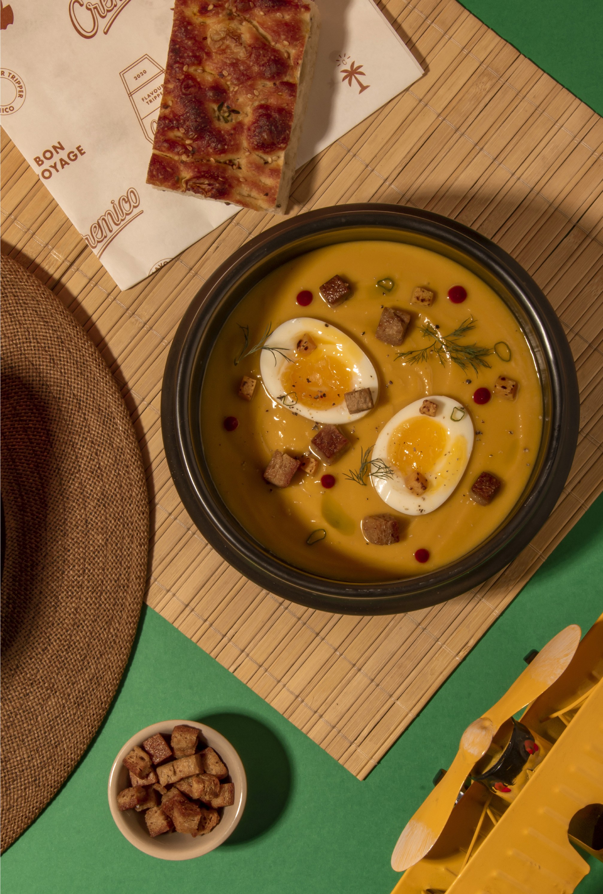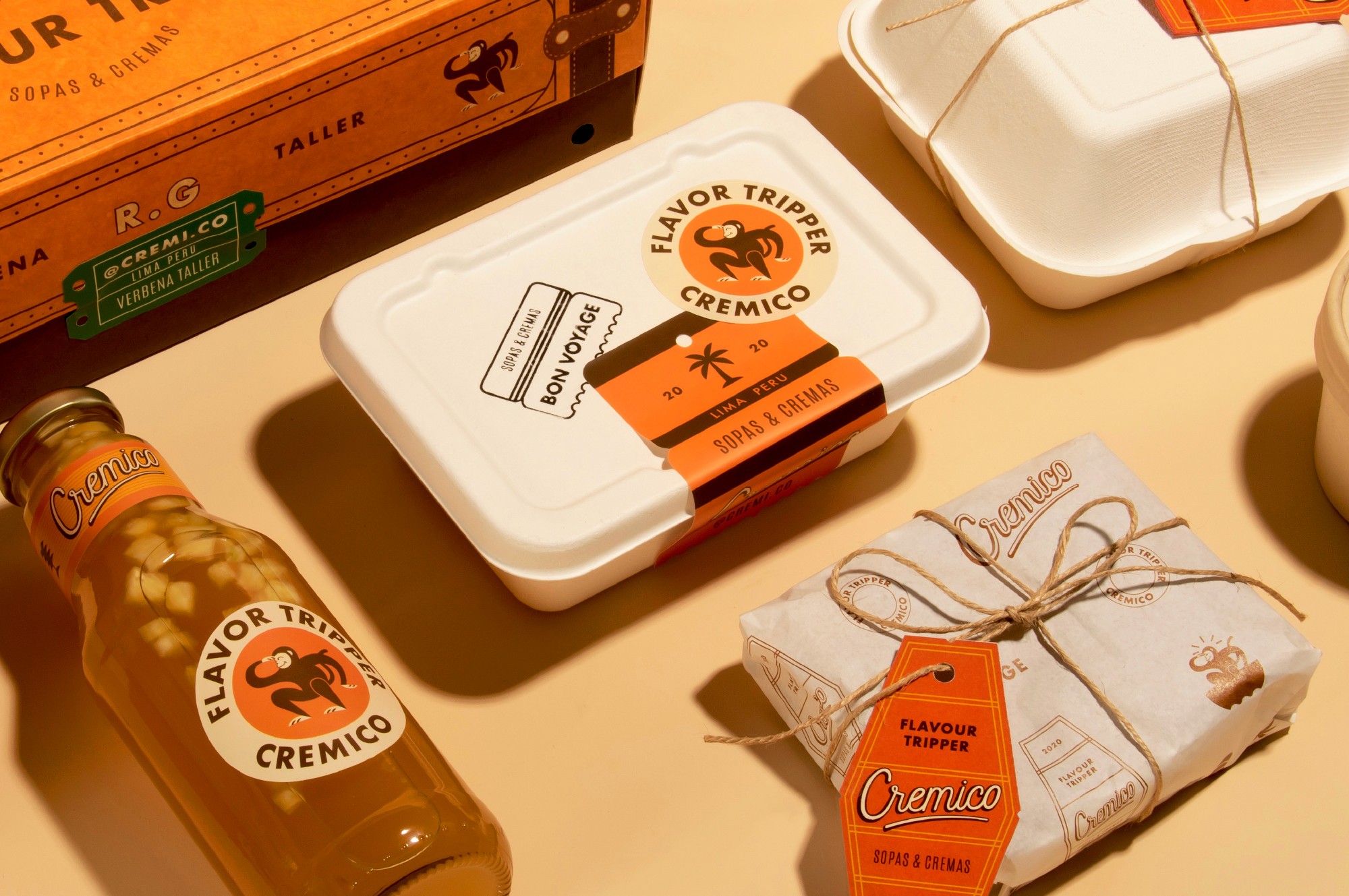 Cremico was born from chef Ricardo Goachet’s desire to turn food into a journey. More than simply offering soup, the brand invites people to travel through flavor—each bowl a small escape to distant places. The identity embraces a sense of adventure and discovery, blending exotic and natural elements inspired by the chef’s ingredients and the nostalgic spirit of travel. A playful monkey character—symbol of curiosity and exploration—guides the brand across imagined landscapes, while warm colors and a carefully crafted aesthetic evoke comfort, memory, and the feeling of flavors arriving from somewhere far away.
