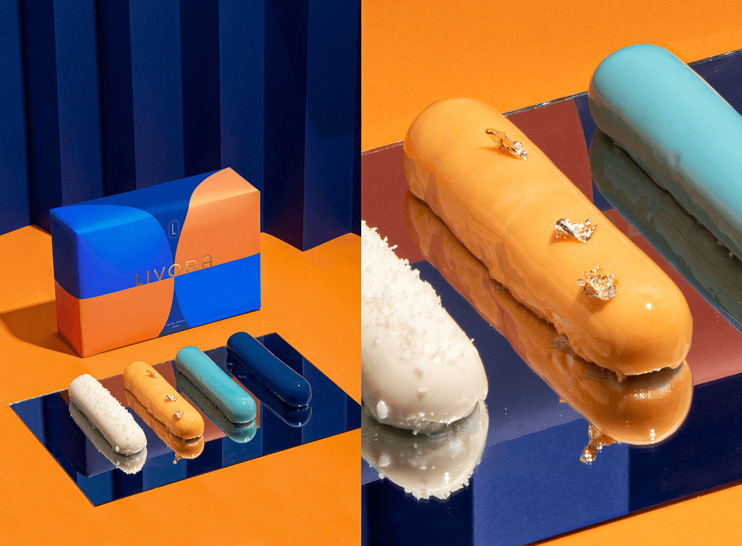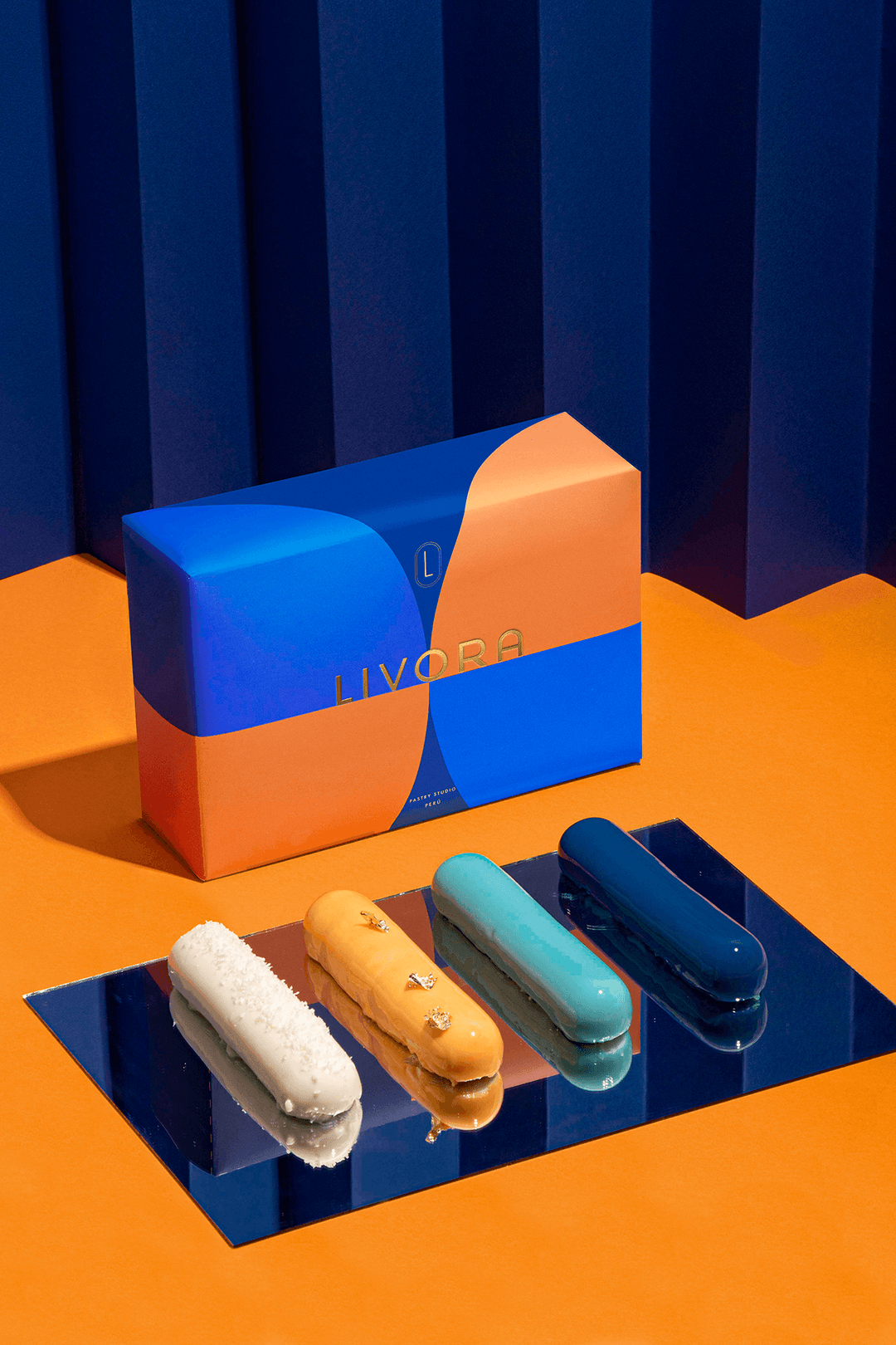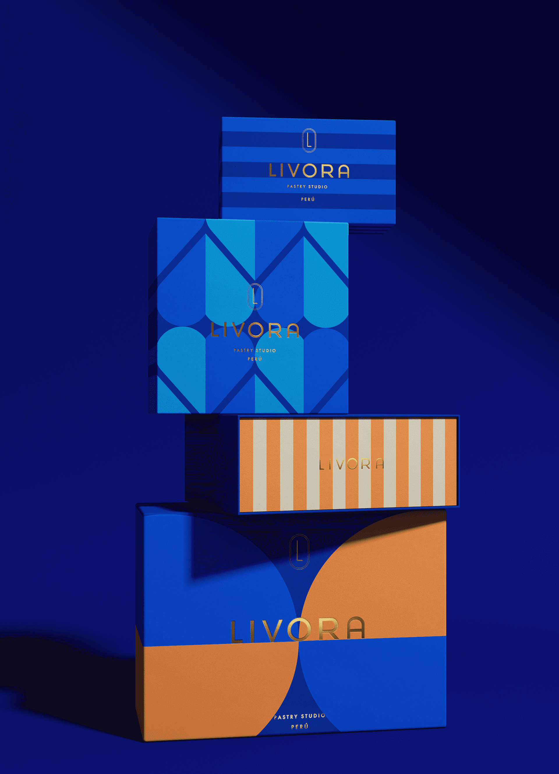 Livora is a European–Peruvian pastry concept that blends minimalist elegance with emotional depth, balancing technical precision and experimentation. Inspired by French culture and Art Deco, the identity focuses on geometric patterns to create a refined and cohesive packaging system centered around its signature entremets. The result reflects a harmonious fusion of European sophistication and Peruvian cultural roots, expressing the brand’s gourmet essence and commitment to quality.