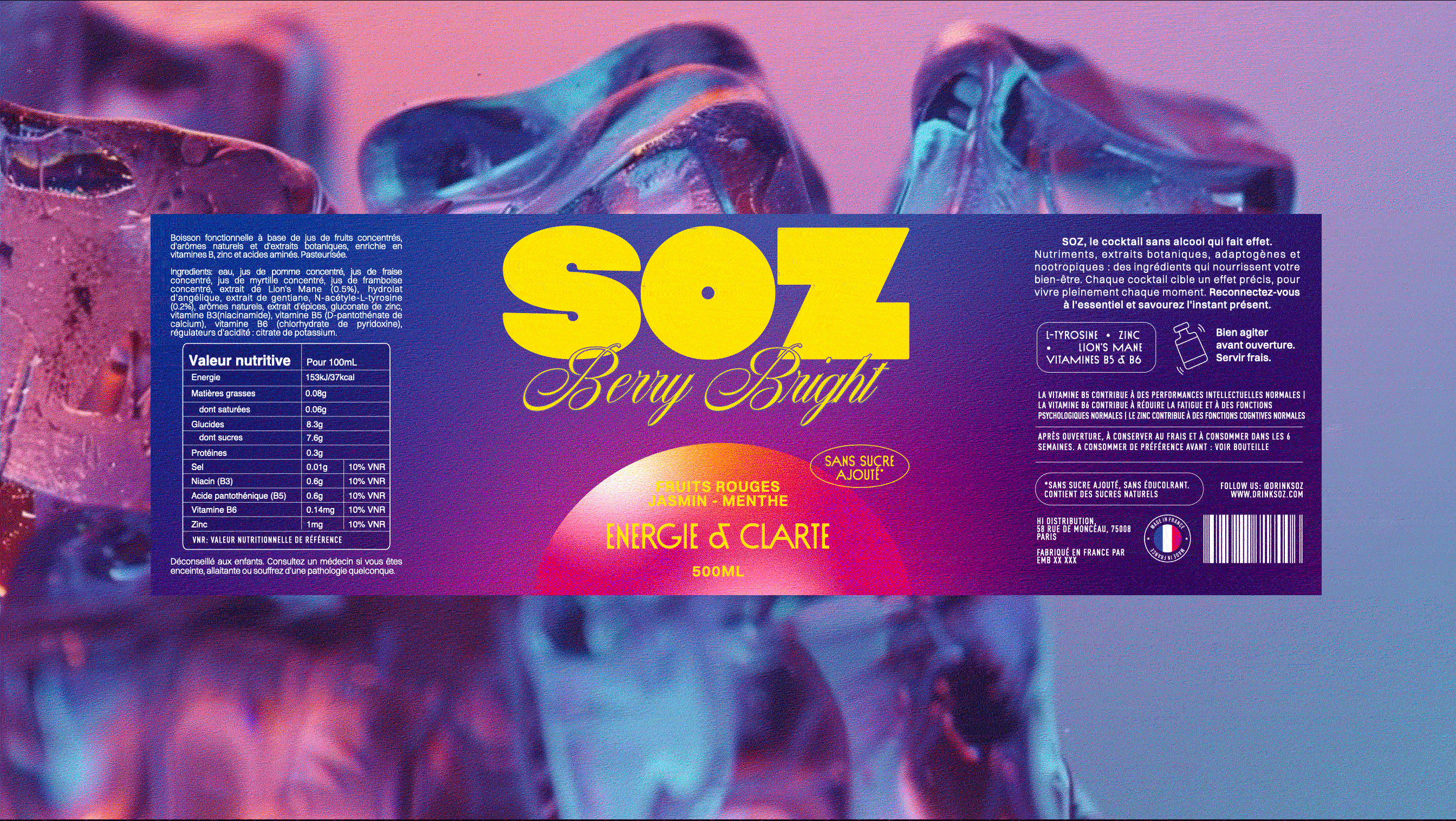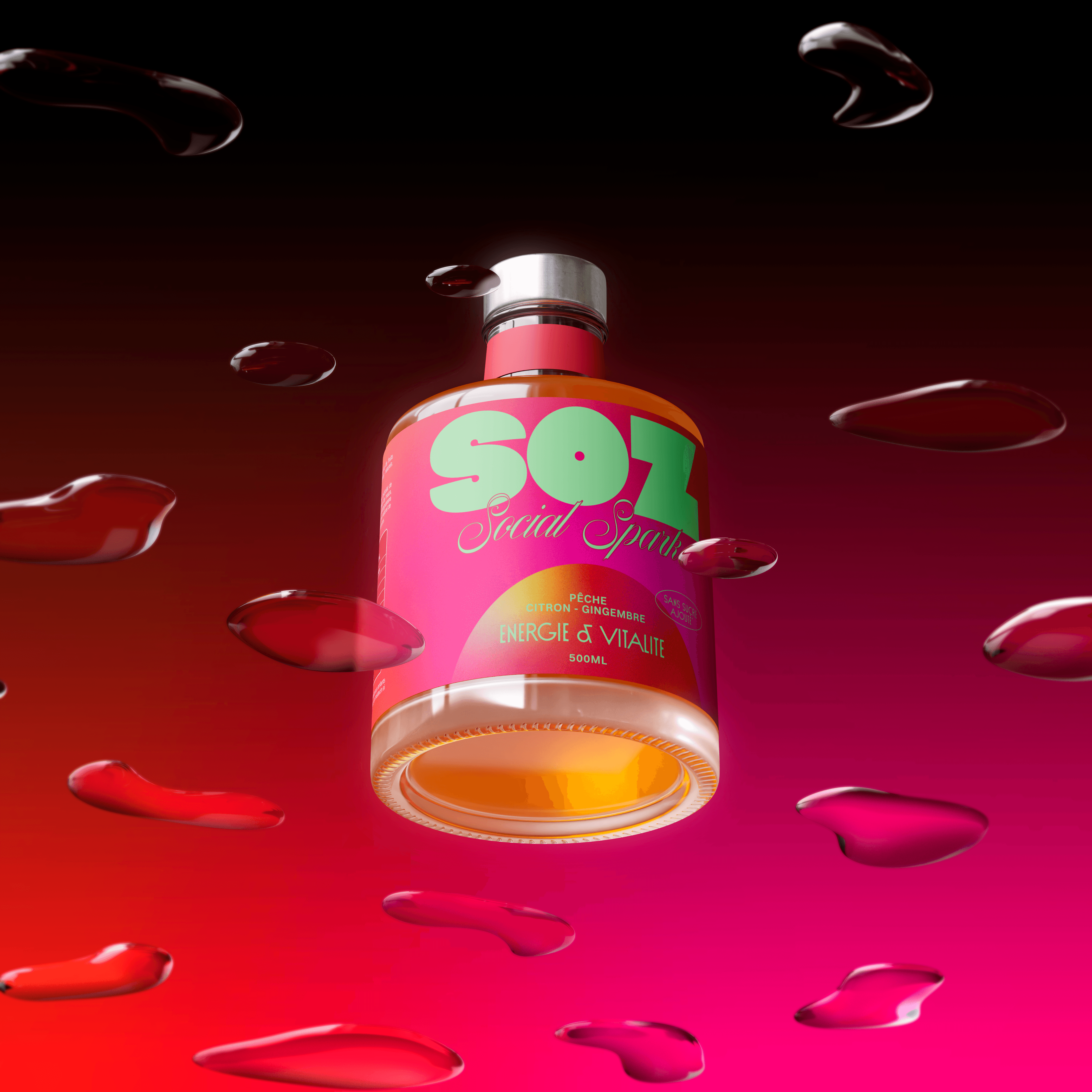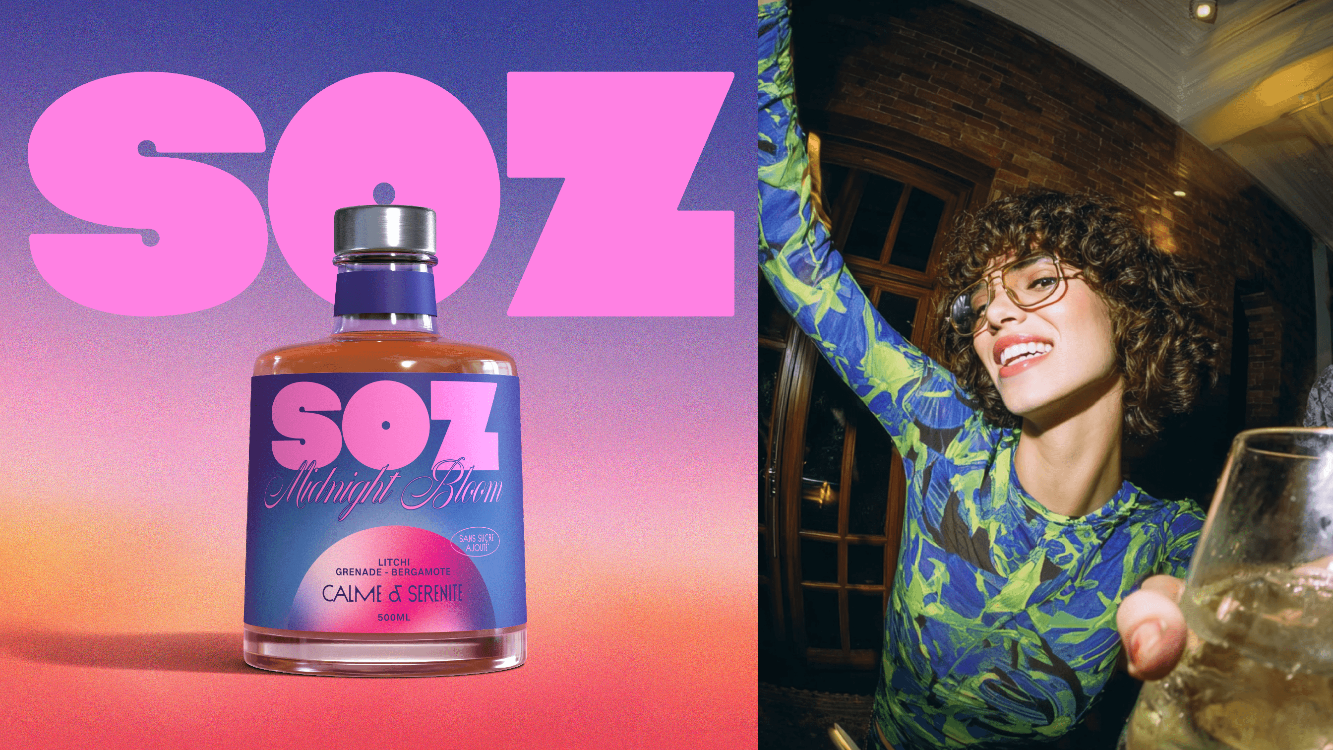 SOZ is a natural mocktail brand born from the idea that the party doesn’t stop just because alcohol does. Challenging the quiet codes of traditional wellness brands, SOZ embraces nightlife, energy, and self-expression. Inspired by Miami Vice and disco culture, the identity captures a bold, vibrant, and unforgettable spirit — proving that natural can be fresh, but also loud, confident, and made for a new generation that celebrates on its own terms.